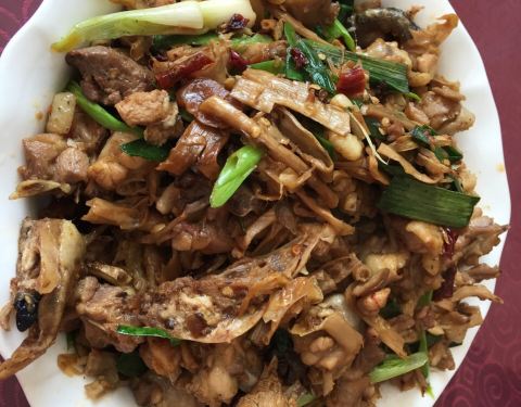 这家店的肉丝炒干笋,还有蕨菜炒腊肉,蒸腊肉,味道都是很不错的,很有地方特色,很好吃,服务态度也很好,菜量真是挺大的,很多人吃都够吃的呢!