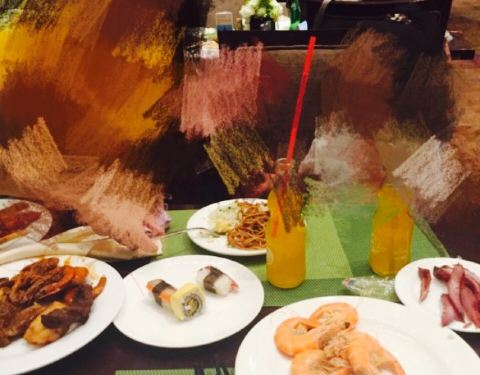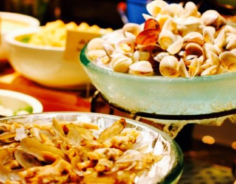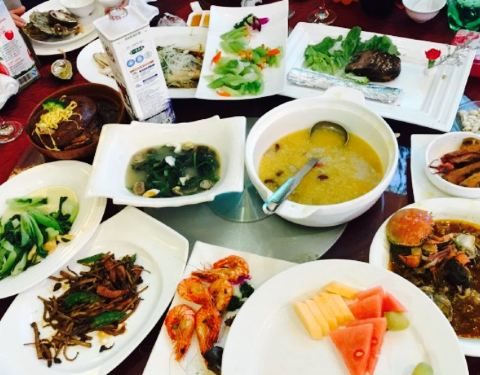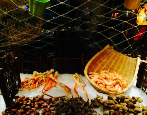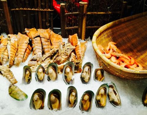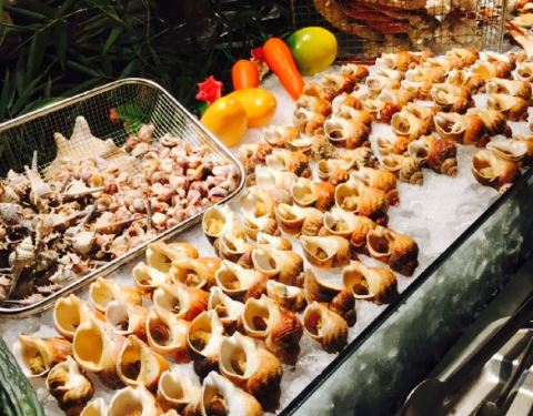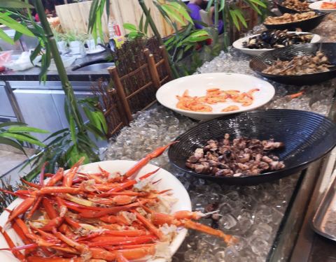 五星级酒店里的自助餐来说。她们家绝对是十分有良心的。价廉。我来跟你说说人均112的自助餐。三文鱼,焗生蚝,蒸扇贝,小龙虾,青口贝,竹节虾,盐水虾,各种螃蟹。片皮鸭,各式热炒,牛排,寿司,水果巧克力喷泉,各式鲜榨果汁,各种中西式甜点水果。没有时间限制。我们进来的时候差不多5点多。最后7点多以哈根达斯收尾。坐在日料区域的小伙伴对三文鱼情有独钟。服务人员加了一盘又一盘。好评哟。唯一美中不足的是。她们家的西点不怎么样。不知道是不是直接拿的成品。其它都特别满意。
