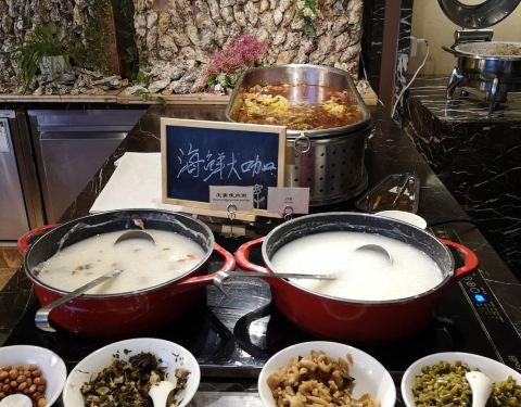 酒店经常会有团购,一价全包的那种,所以自助餐厅也非常忙碌。 不接受预定,住客不行,开元的高阶会员也不行。四点半自己去排队。 菜品蛮丰富,食材不怎么新鲜,冷冻的雪蟹腿之类建议不要吃。牛排是工业牛排,味...酒店经常会有团购,一价全包的那种,所以自助餐厅也非常忙碌。 不接受预定,住客不行,开元的高阶会员也不行。四点半自己去排队。 菜品蛮丰富,食材不怎么新鲜,冷冻的雪蟹腿之类建议不要吃。牛排是工业牛排,味道怪异。甜品还行。
