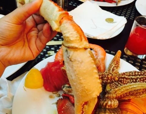 菜品蛮丰富,食材不怎么新鲜,冷冻的雪蟹腿之类建议不要吃。牛排是工业牛排,味道怪异。四点半自己去排队