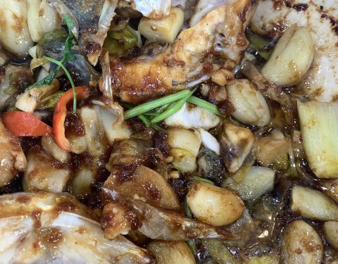 每次来雪野湖都到海逸山庄来吃饭,这里的鱼头汤、莱芜香肠、莱芜炒鸡都比较地道