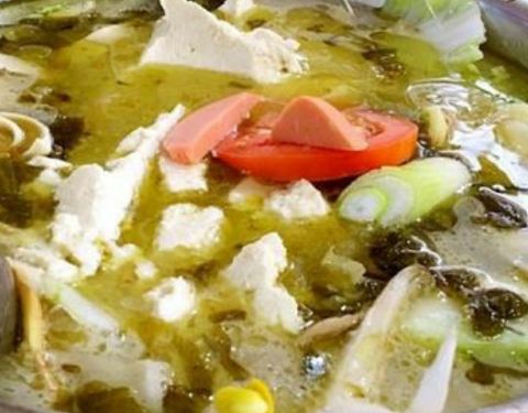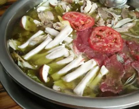 泸州酸菜豆花火锅就位于内江师范学院后门处不远的地方,性价比高,师院的学生经常去吃,一人点一份豆花,然后素菜随便吃,人均也便宜,大概一个人20多