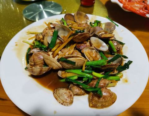 餐厅老板服务态度实在好,吃饭来回都接送,节约了打车的麻烦。说说菜品,海鲜新鲜,点了虾和带子都不错,挺鲜甜的,还有个特色菜四角豆,以前都没吃过,应该是这边的特产,口感还不错,但是,有个东山羊就建议大...餐厅老板服务态度实在好,吃饭来回都接送,节约了打车的麻烦。说说菜品,海鲜新鲜,点了虾和带子都不错,挺鲜甜的,还有个特色菜四角豆,以前都没吃过,应该是这边的特产,口感还不错,但是,有个东山羊就建议大家别点了,调味还可以,只是肉实在太硬,完全咬不动,老板娘说是散养的羊所以这样,不好评论,但的确吃不动。