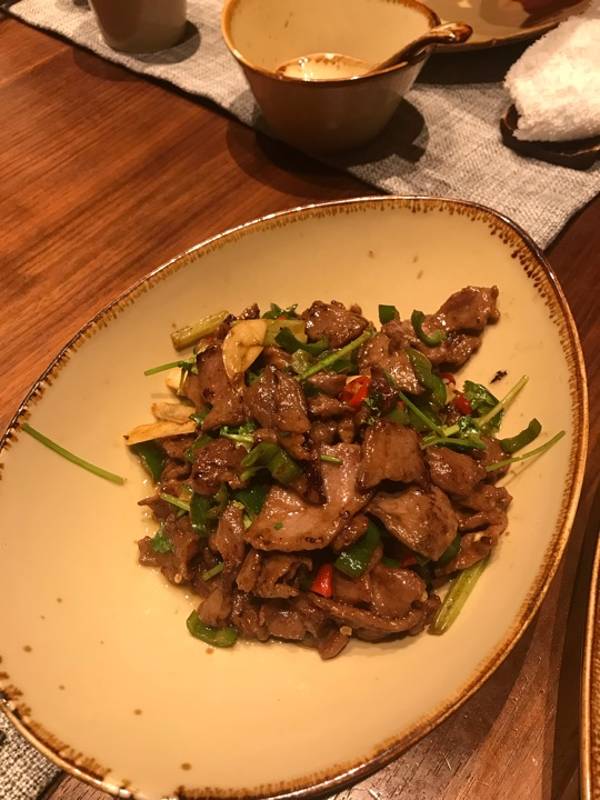 - 但是好多住客都选择在这里用餐,我们点了辣椒炒肉,外婆下饭菜,水煮牛杂,蒜蓉扇贝等等