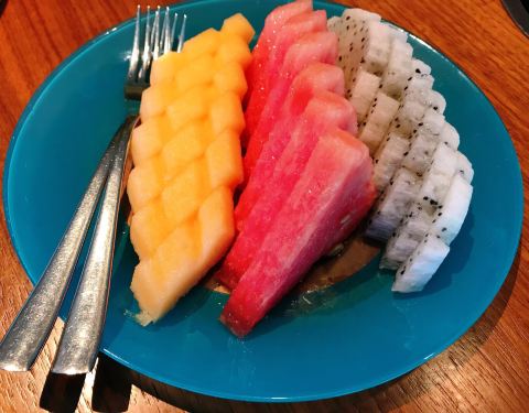 食材新鲜极了,整条海南当地活石斑鱼,大虾,生蚝,牛肉,手工鱼丸肉丸,时令蔬菜水果,万宁的凉茶,...