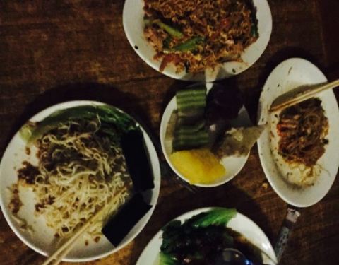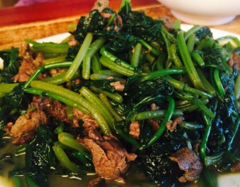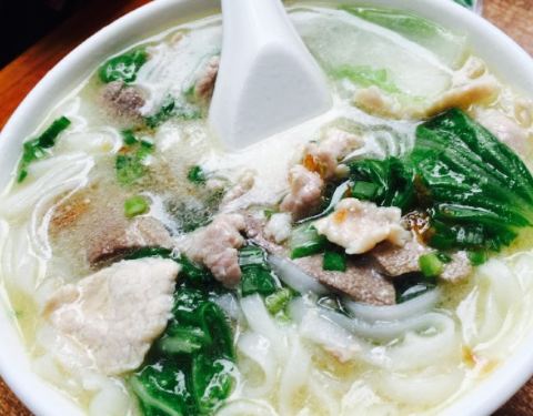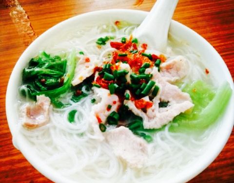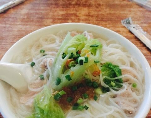 中午时分,店里很多旅客,电扇在头顶吱呀呀地转,都是阿姨们在招待客人。没有空调,外地来的人吃出一身热汗,本地人还逍遥自在。都是家常的味道,面汤里是方便面,捞河粉上配的大概是牛肉丝,红薯叶炒牛肉是妈妈...