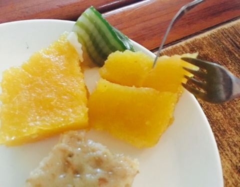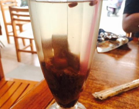 在海南万宁兴隆华侨农场那边的一个店,都是本地的特色小吃。环境是敞开式的,点心一般都是两元一块,肉粽是三元,米粉八元。纯咖啡五元一杯,加奶六元。东西价格便宜,六个人才花了68元。在海南当地人很高兴来这样的咖啡厅,吃点东西喝杯咖啡能坐好久。这边的东西很爽口,基本都是黏米做的,所以胃不好的不要多吃。