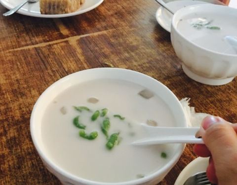 来兴隆两个多月了,第一次在外边吃早饭,在网友攻略看了好久选了这家印尼风味的早茶,10点半到的店,店里有空位置,基本坐的都是本地人,听她们说着我不懂的方言也很好玩,点了一份炒米粉,一杯咖啡奶,一个七层膏,一个绿色圆圆里面包椰肉的膏,米粉是我喜欢的味道,七层膏有淡淡的椰子味可口,咖啡奶味道超级浓才6元,真是让生活在帝都的我惊艳到,觉得比某巴克好喝。这次就我一个人来吃,没点太多,打算过几天带全家来吃早茶。感受一下地道当地人的生活。