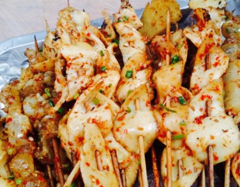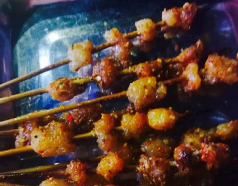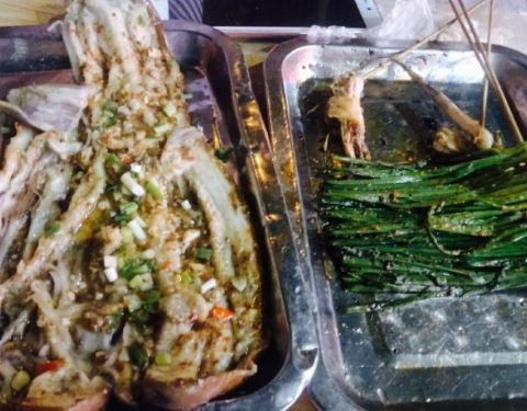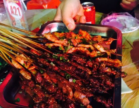 来衡阳见闺蜜,晚上打完牌11点还要宵夜,真的好久没有宵夜过了,感觉曾经的记忆都被唤起了,天气很凉爽坐在室外,外面人也很多很红火,虾尾分量不算太多,但很清新很可口,之前在家里吃过的韭菜再加鸡蛋,这边烧烤店也都有了,味道也还不错,烤串是少不了的,牛肉羊肉还有一个五花肉,第一次吃这样烤的五花肉,还不错也不会感觉腻,点了一个小份的海鲜粥,实在不能跟广东的对比,但份量大,小份的我们四个人都吃不完,羊排分量也很大,根根分明非常香,最终都没吃完只能打包,第一次在衡阳吃烧烤,觉得很不错。
