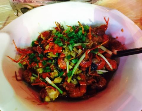 来衡阳见闺蜜,晚上打完牌11点还要宵夜,真的好久没有宵夜过了,感觉曾经的记忆都被唤起了,天气很凉爽坐在室外,外面人也很多很红火,虾尾分量不算太多,但很清新很可口,之前在家里吃过的韭菜再加鸡蛋,这边烧...