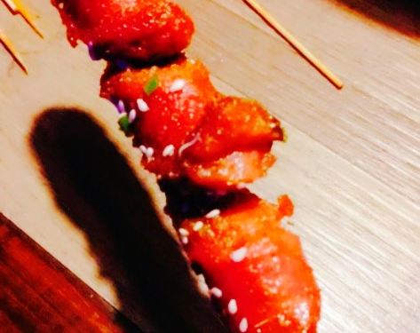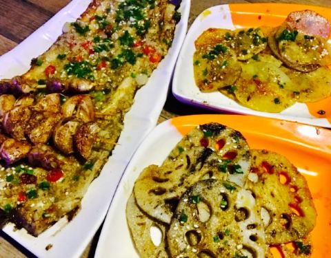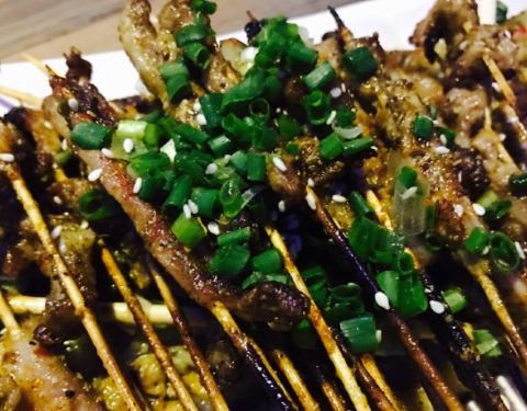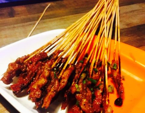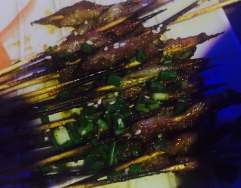 已经是第二次来这边吃了,说真的以前一直超爱吃烤肉还有火锅什么的,每次跟朋友几个人就跑去吃这些,然后有天就突然说超级想吃烧烤,然后朋友说这家有代金券还挺划算就跑了过来。这里的门头并不是非常醒目,装修其实也算是有些特色吧还挺不错的,就是小了点,进去有种稍微拥挤的样子,这里的东西味道的确不错,至少第一次去的时候觉得超级爽口,朋友很爱吃这里的开胃豆皮还有牛板筋,我比较爱吃肉串什么羊肉串啊五花肉什么的??????有些东西是一份多少个的,其实觉得藕片超级鲜美就是太少了,真心不是一般少,价格看起来还好但是上来一共几片真心感觉不划算而且三个人一个人就吃两三片就没了所以想象能有多少,希望以后能分量加上点,其余都不错。