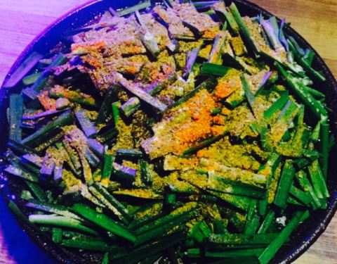 - 今年的时候,十里那边也开了一家,那你的哦,烧烤韭菜和五花肉超级入味