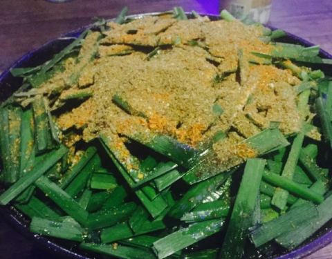 味道还可以 。就是适合更多人去吃吧 。两个人不建议点豆皮 。份量太大了 。建议栏老板可以来个小份的 。这样大家也可以多些选择吧 。烤韭菜是铁板的 。吃的感觉有点油腻 。牛蛙...