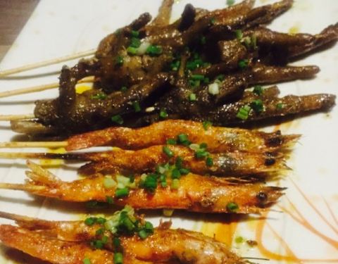 - ...五花肉串,基围虾,鸡爪,豆皮,藕片和洋芋,两个人一共吃了103块的串儿,外加一瓶3块钱的菠萝啤