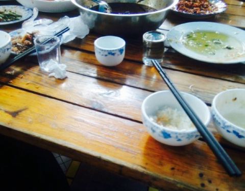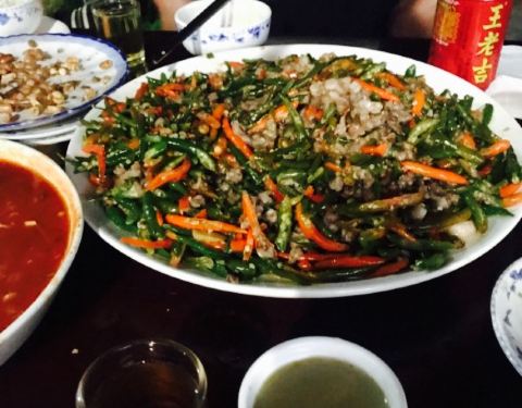 友人强烈推荐的机场路哑巴兔,离绵阳机场很近,还算好找,9点前后到的坐满了客人。8个人点了满满一大桌子,兔头牛肉猪蹄还有三大盆,哑巴兔,鱼香兔,酸菜兔,人说哑巴兔得名原因就一开始吃就不能停,否则辣劲儿...