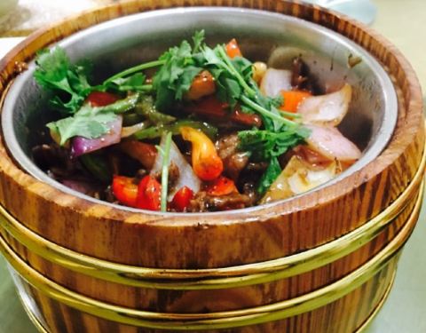 石锅圆子汤 韭香生焗虾 混椒乌鸡 白切鸡 红烧牛肉 藤椒鸡 茶香手撕鸡 藿香裸斑鱼 菌香脆骨 巴骨肉 杂酱土豆泥 麻辣鸡块