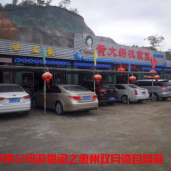 看望了父母的朋友,我们继续前往双月湾,还要行驶二十多公里。途中,我们看到这家“黄大妈农家菜”门口停了很多车,想必人气不错,决定在此吃午饭。午饭花了257元,菜量很大,味道确实不错,特意点了招牌菜老农土...