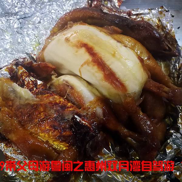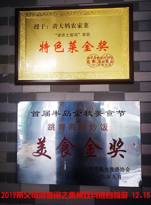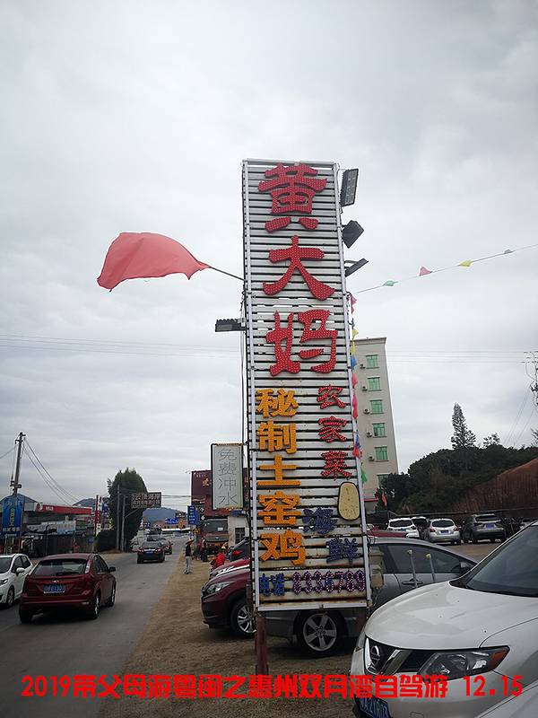 看望了父母的朋友,我们继续前往双月湾,还要行驶二十多公里。途中,我们看到这家“黄大妈农家菜”门口停了很多车,想必人气不错,决定在此吃午饭。午饭花了257元,菜量很大,味道确实不错,特意点了招牌菜老农土窑鸡,香气扑鼻!