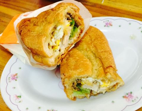 位置还真不好找 。来回走了两遍才发现 。不在主路上 。是第一个口子拐进去 。店面不大 。听说老板娘是越南人哦 。普通话说的还行。越南面包 。这个确实赞 。是法国长面包改进而...