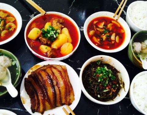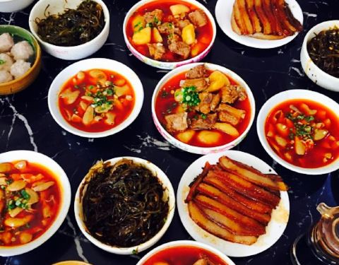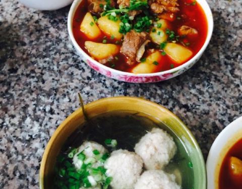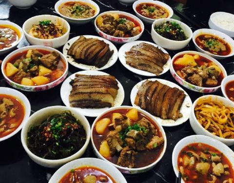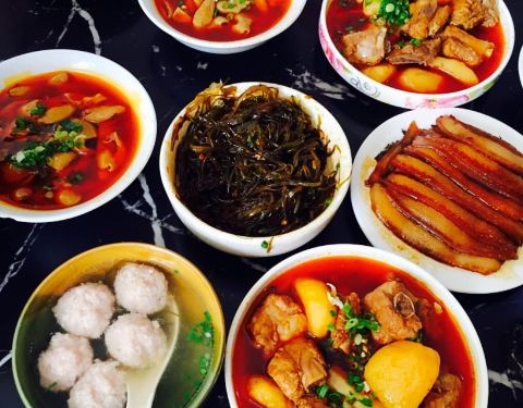 - 但经典,肥肠入味有韧性,有嚼头,土豆烧排骨土豆软糯适口,比排骨入味,凉粉好吃好鲜美,圆子家常味...