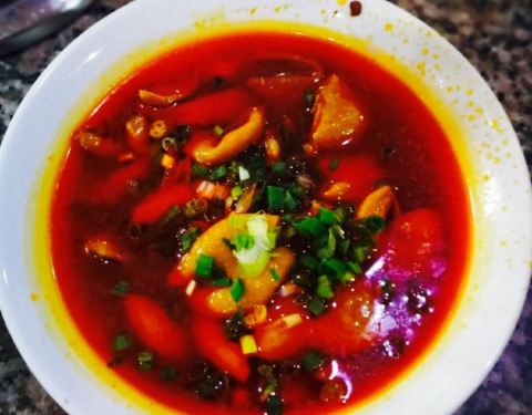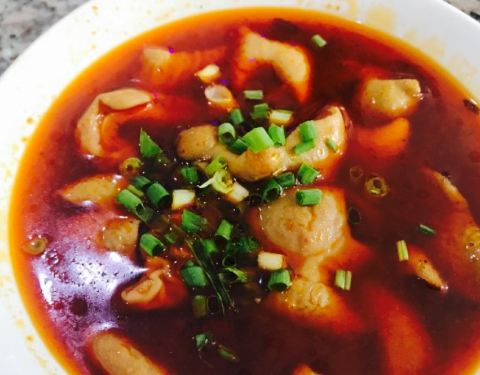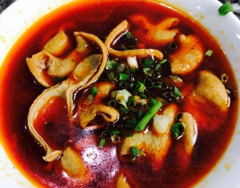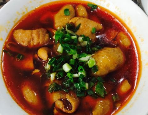 江油的肥肠真入味,一大早朋友就带我们来用餐,一碗烧肥肠,一碗白米饭,一碗元子汤。北方胃真的顶不住早上就吃这么辣,回来就跑厕所。只是味道没得说,肥肠很嫩,可口。元子汤解腻,米饭不香,也许是南方米。