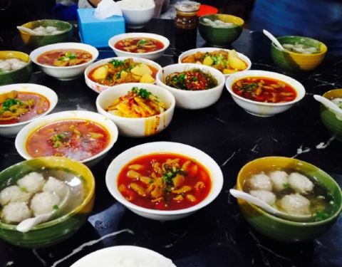 我们两口子最后竟然吃了一碗肥肠粉,一碗凉粉,三碗肥肠,一碗圆子,一碗带丝汤,太满足了,午餐都不...