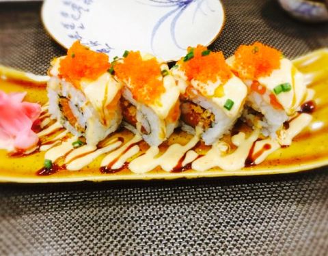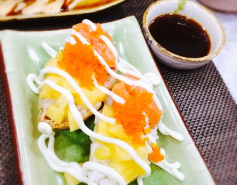 一直都很爱日料 。看到江油开了一家新店 。还是觉得肯定要来尝试。环境,有吧台有座位 。装修就是那种日式居酒屋的样子 。隔了一个二层 。人多的话觉得坐楼上挺好。服务,服务有一点想吐槽 。去的时候小哥扔了个单子一支笔让我自己写就走掉了 。又不是快餐店还是要讲究一点服务的吧 。上菜也不是很专业 。放在我旁边就走了 。我还要自己再端过来 。不说味道好不好 。这些事情多多少少还是会影响到整个就餐感受。口味,点了四道菜 。116 。用了劵之后人均30多的样子 。#富士见招牌卷# 。卖相还是不错的 。米还可以 。味道中规中矩吧 。下次尝尝其他的卷。#三文鱼塔塔# 。薯片上的三文鱼沙拉 。上面有跳跳糖 。三文鱼吃起来蛮新鲜的样子 。黄瓜很清新 。酱也很喜欢 。本人觉得可以加一点水果粒这样口感更丰富。#芝士奶油焗大虾# 。这个很推荐,芝士奶油香香嫩嫩的 。很像布丁 。虾也蛮大的 。19一只。#天妇罗乌冬面# 。全部的乌冬面在我眼里都差不多 。也说不上好不好 。但是天妇罗炸的很不错啊 。虾肉本身也有盐有味的。