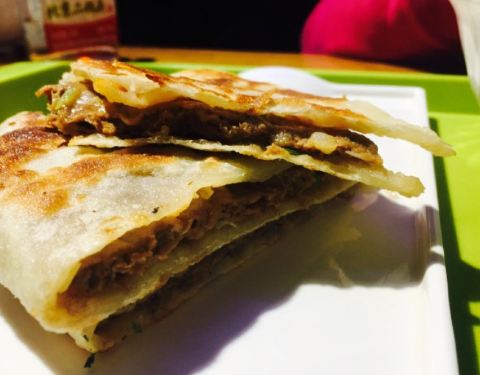 肉夹馍套餐十分好。小菜一份,自己打,小盘装得下就成,我是每样夹了一点儿,腌制黄瓜最美味。肉夹馍,竟然是香脆酥皮的。不比在西安吃的差哦。馅料非常好,新鲜味道好。北京烤鸭饼,本次最佳。太爽口,香脆+烤鸭+大葱,太好了。牛肉葱油饼,分量超级足。牛肉厚厚一层。米皮,米皮上面的香脆花生好吃。豆花,咸味麻辣口的,不错。意外的鲜美。