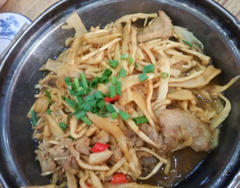 鹰潭排名靠前的餐馆,藏在市中心的一条路上,门对门开着新店和老店。香焖鸡很有特色,味道微甜很鲜。芋头丝牛肉是很奇特的搭配。价格实惠。