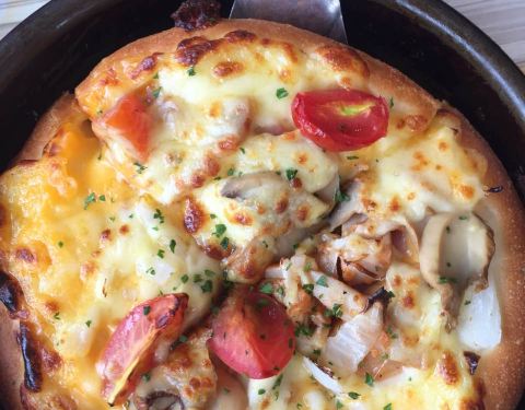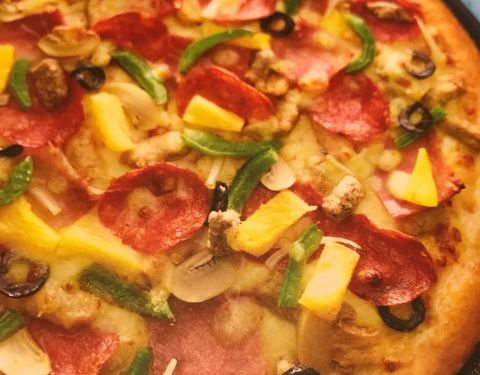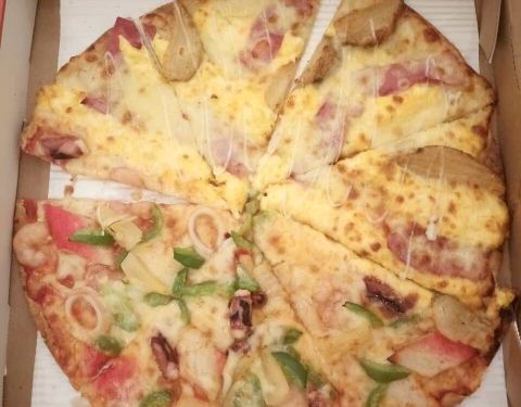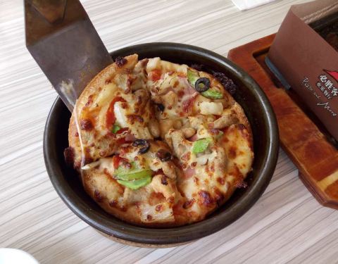 披萨不错,薄薄的,大份的,一人吃不完,跟同事一起吃。