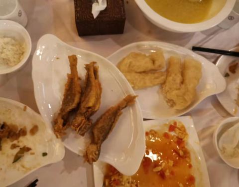 七月中旬去的山东省龙口市旅游,餐馆还蛮大的,做出来的菜挺清新的。有道菜记不得名字了,好多尖椒和肉沫炒出来然后包窝窝吃的,哇撒,辣滴一米。菜肴。十二个人一桌子才吃了五百多,并且还包括海鲜呢,价钱实惠...