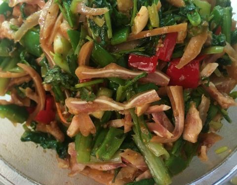 里面搭配有花生、肉丝等,还有好多豌豆、芝麻酱,拌开后面条均匀地沾上酱料,非常好吃