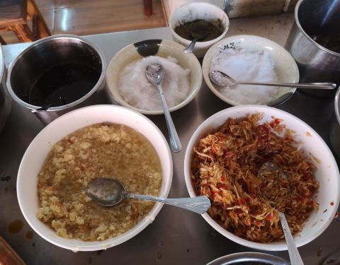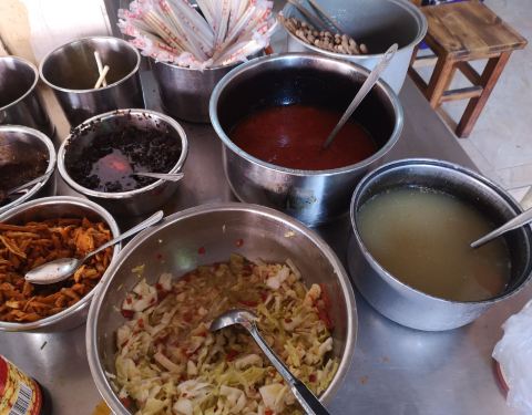 来吃早点的当地人很多,他们家煮的米线味道很好吃,主要是调味料,佐料非常多,很是喜欢了