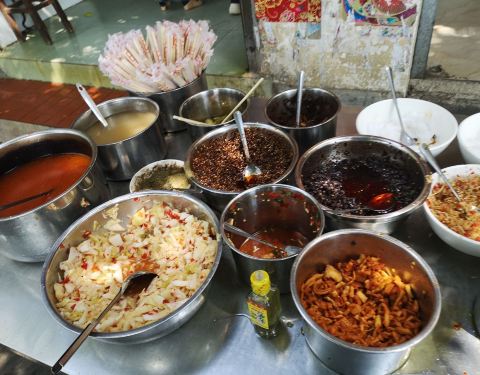 这家旺角早晚点店味道就是好,天来吃的是面条,那很棒,调料很多,是傣族的味道,景洪市的傣族味道是早点的一大特色,佐料多,非常好吃。
