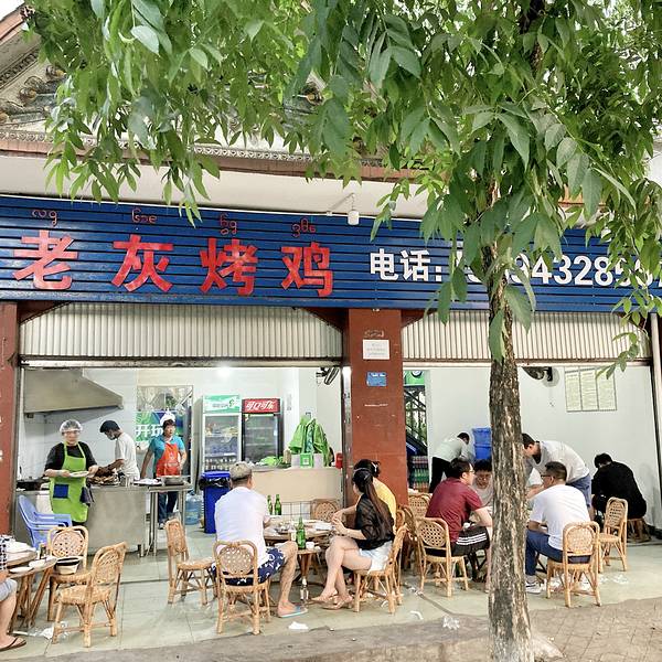勐海烤鸡店&老灰烤鸡 这两家店环境都是“苍蝇馆子”水平,位置都还在一起,关键是口味还不相上下;所以,去的时候看哪家不用排队,就去哪家;烤鸡基本按1人1只或1.5只点,要点够,不然可能就加不了了