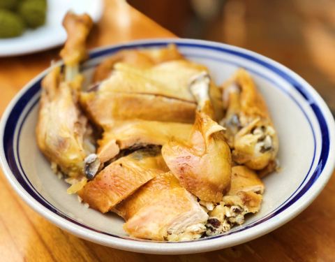 老板娘热情,老板超帅手艺有好,是我吃过最好吃的之一,焗盐鸡,酒糟大肠,黄米粿都是松阳的特产,来了这里必须尝尝,焗盐鸡外脆里嫩,颜色也很有食欲。酒糟大肠有酒糟的香,还有酸萝卜的酸,配之青椒,颜色煞是...