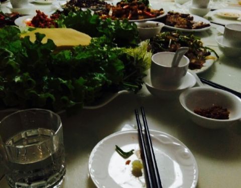 本地的朋友带着来的,包间布置的很有特点,米酒非常好喝。大概十个人,点了挺多菜,捡印象深的写写,锅包肉,不会太过油腻,酸甜,肉也不柴。明太鱼,挺大只蒜瓣肉,细嫩,调味可口。五花肉,厚切的,蘸酱卷菜再加点青椒,感觉得到油脂的香味却不会糊在口腔里,很不错。鲅鱼,怎么做都不会难吃的鱼,与铁板接触的鱼皮焦香酥脆,鱼肉有韧性,入味不咸,最喜欢这道。环境还是可以的,或许是我们人有些多了,坐的略挤,不习惯盘腿坐着到吃晚饭的时候有些麻。