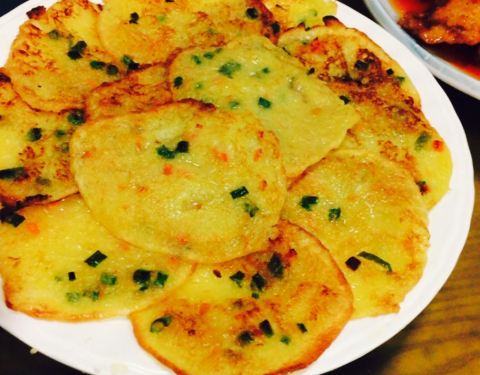 #海鲜饼#,软糯,有淡淡的甜甜的,很很入味。推荐。2017年回家第一天,第一顿饭在天仙包饭