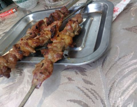 木卡姆故乡快餐店在新疆喀什地区莎车县,面积挺大的,我们在2楼吃得,主要特色是烤鸽子,不过我们点了鸽子面,挺鲜的,还点了烤羊肉串,挺好吃点肉,