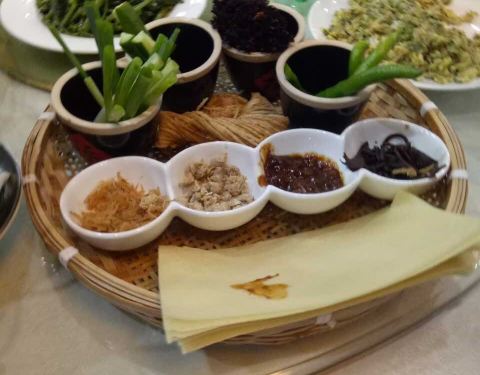泡完温泉,附近也没有任何吃饭的地方,于是就直接在这边吃了,环境很不错,很有特点,还有那种像是在船里吃的,很好玩儿, 。菜式应该是东北菜的风格,价格中等偏高吧,但是在这种地方也还可以接受了,上菜速度极快,味道也还可以。四个人吃了180,比温泉里50一位的自助还公道,不过吃的一定是比那个强多了。