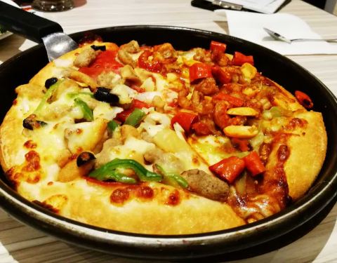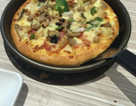 还好,不错,超级至尊披萨超大份,肉很足,是九寸的,没吃完,打包带走了,拼盘味道挺好,小盆友喜欢吃,下次有活动还会来的!