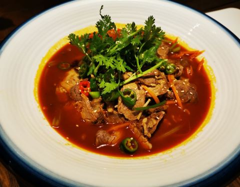 因为是晚饭,我们点了石耳炒蛋,还有个蒜香煲仔鸡,味道都很不错的。另外晚餐点了一碗面,吃得很满意