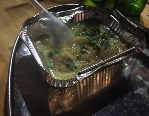 位置 | 县体育馆对面往县城方向再走一点,第一个Y字形路口右转,在街与另一条街的转角处。 味道 | 味道不错。县城的烧烤店不多,有生蚝的也大多数是蒸的,很少烤的。这家的生蚝算是必点。浓浓的蒜香味,非常美味。 扇贝也味道不错,和生蚝一样,刚出炉很烫。有点美中不足的是扇贝底下有粉丝,粉丝很多黏在了扇贝底下。 猪脑必点,不敢吃的就算了吧。这里配一个捂脸的表情。我挺喜欢猪脑的,烤的尤其好吃。上面有很多蒜头,非常美味的蒜香味。猪脑是放在锡贴纸杯里烤的。 同样放在锡贴纸杯烤的还有日本豆腐。味道也不错。只是很烫!真的很烫!要过一会儿再吃。 蔬菜类烤的总体不错,只是味道还是有点欠,可以更浓一点。 肉类也很棒,鸡腿等等,如果喜欢加辣可以让他特别加。顺便说一下,烤的时候就会问要不要加辣。 环境 | 路边的感觉不错,蚊子不多,配上啤酒,虽然没有街景,但也是一种享受。不断有外卖接单,看到外卖小哥进进出出。生意很好!
