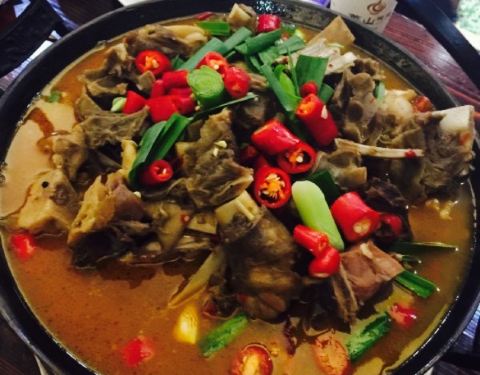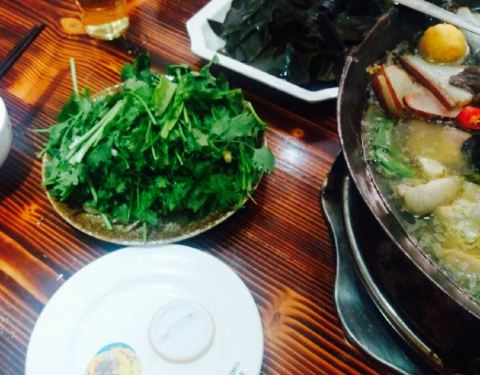 蒜香排骨很好吃,米酒很地道醇厚,鱼羊肉火锅的羊肉尽是骨头,鱼倒是有很大一个鱼头,味道偏咸,下酒...