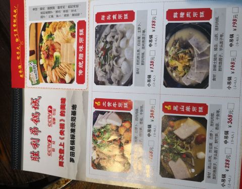 吊锅份量足,味道鲜,就是觉得有点油腻,环境紧凑,生意很好,叫了几次服务员续水没人理服务没跟上,望改进。