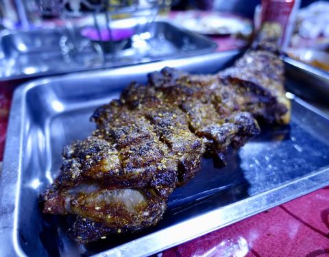 夜宿柴河月亮小镇,在老板娘的推荐下吃了宫廷锅中锅。当晚小镇全镇停电,店里也是,靠着发电机来了几分钟店后游熄灭了,但还好不影响大家的兴致。老板娘很忙,但也挺周到的。点了烤羊排,烤羊腿,羊杂汤,拍黄瓜...