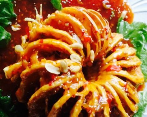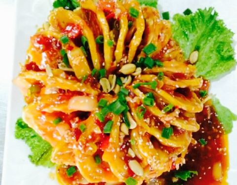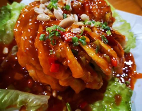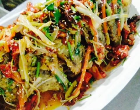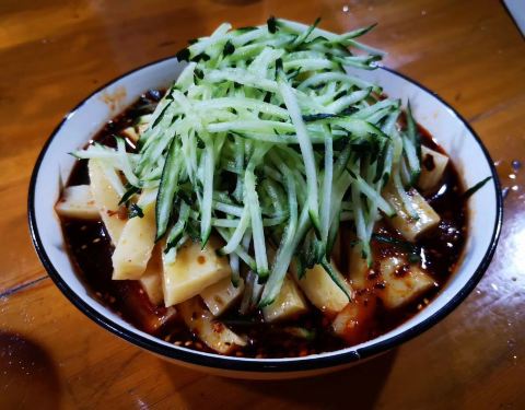 从五台山出来又去了万宁冰洞,在回程路上选择宁武这个小县城暂做休息,小县城真的很小,看网友攻略就这家网友攻略还有几条,于是选择这里吃饭,门帘很大,分上下两层,价位也真心便宜,五个菜一共花了不到一百块钱,菜的味道都很好,就是上菜太慢了,一个菜最少要等十五分钟才能做出来,所以基本上最后一道菜上桌的时候是一个小时后了。豆面茨粉,是一种很特殊的宁武范儿的凉粉,拌上特质调料,酸辣入味。一品茄子,上去的时候看着很壮观,很大一份,圆茄子切成花刀,炸过之后浇上调料,外面脆皮但里面有点像整的茄子,觉得也不是很熟。山药沾胡麻面,胡麻应该是这边特产吧,在悬棺玩的时候买了点回家。这道菜说是山药可是上桌的时候确实土豆啊。过油肉,山西过油肉很有名啊,可是这菜是最后上来的,基本都吃饱了,只是味道炒的真香,可惜还是没吃了。总的来说这家是价格便宜量又足,味道没得说,上菜的速度真是需要改善了,太慢太慢了。