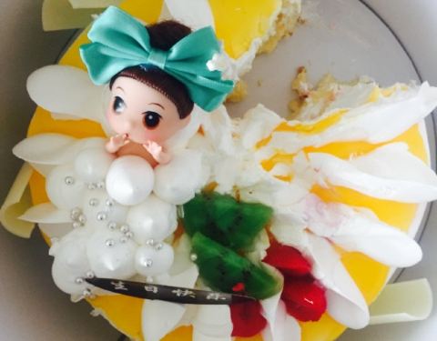 还是挺好吃的,要了天橙的,挺甜的,吃了小半个就受不了了。推荐。过生日两三个人完全够了。提回家有点歪了