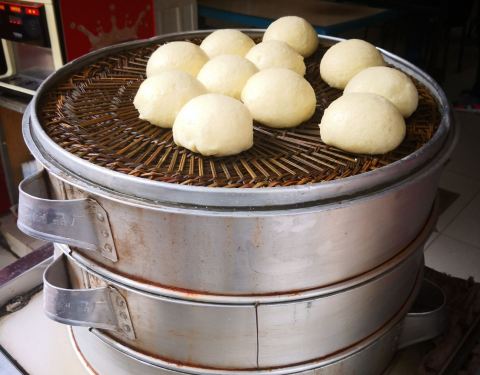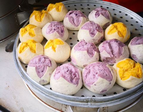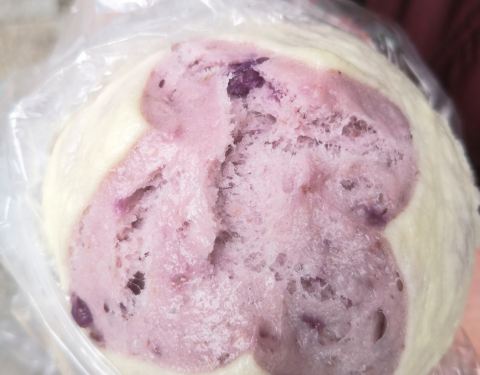 路过一家馒头店 太后完全是被这馒头吸引的 老板介绍,紫色的是紫薯的,黄色的是玉米。1.5一个。 太后喜欢紫色,给我买了黄色。咬了一口,吃不出玉米味道,应该还是有色素吧。 馒头非常扎实,吃了一个可以顶很久都不饿的那种。。