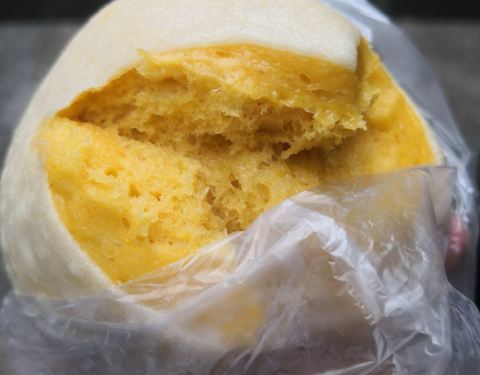 馒头非常扎实,吃了一个可以顶很久都不饿的那种。咬了一口,吃不出玉米味道,应该还是有色素吧